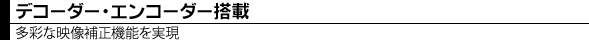 | ダイナミックレンジの拡大・水平解像度の向上と多彩な映像補正機能を実現しました。10bitA/Dコンバータ、11bitD/Aコンバータを内蔵し、微妙な色あい・コントラストをより忠実に再現するとともに、さまざまなノイズを高次元で除去します。 |